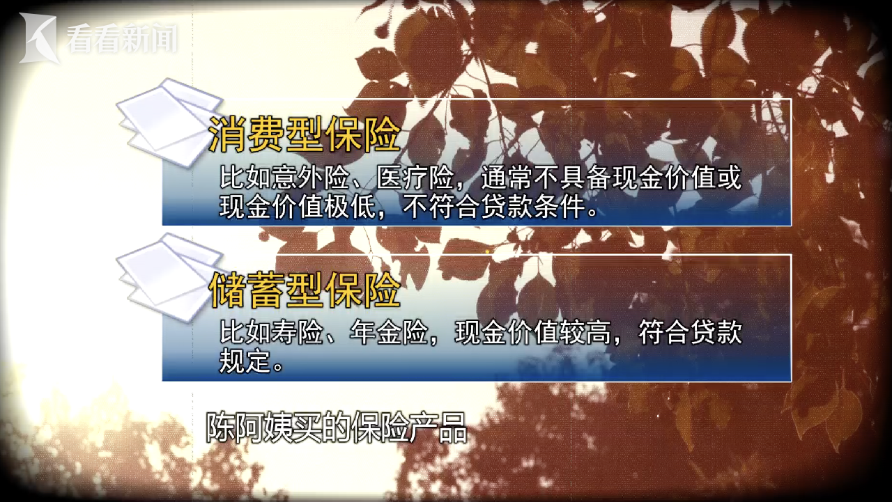 根據(jù)保險(xiǎn)產(chǎn)品的現(xiàn)金價(jià)值特征和儲(chǔ)蓄功能,可分為兩類:一是消費(fèi)型保險(xiǎn),比如意外險(xiǎn)、醫(yī)療險(xiǎn),通常不具備現(xiàn)金價(jià)值或現(xiàn)金價(jià)值極低,不符合貸款條件;二是儲(chǔ)蓄型保險(xiǎn),比如壽險(xiǎn)、年金險(xiǎn),現(xiàn)金價(jià)值較高,符合貸款規(guī)定,可以辦理貸款。陳阿姨買的保險(xiǎn)產(chǎn)品基本是儲(chǔ)蓄型保險(xiǎn),滿足保單貸款的相關(guān)條件。
