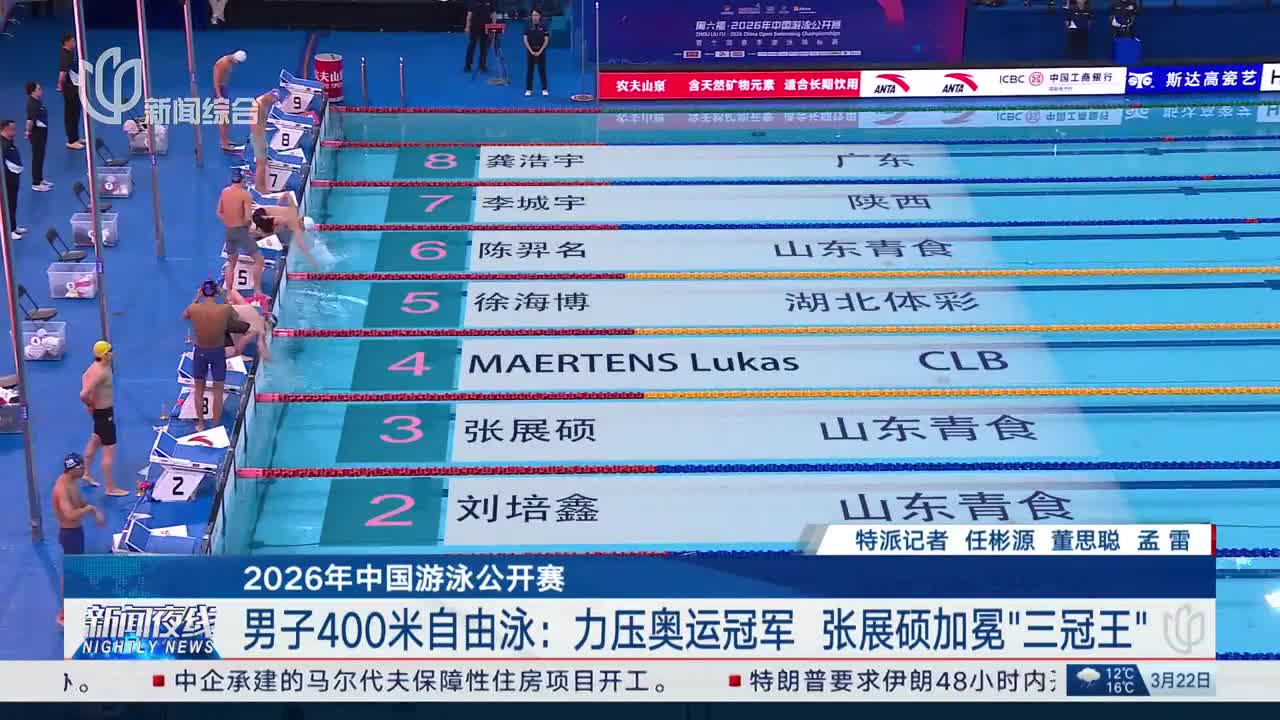 3月21日晚,在深圳大運(yùn)中心游泳館進(jìn)行的中國(guó)游泳公開賽男子100米自由泳決賽中,美國(guó)名將阿萊克西與澳大利亞名將查爾莫斯以47秒70并列第一,潘展樂48秒05獲得季軍。