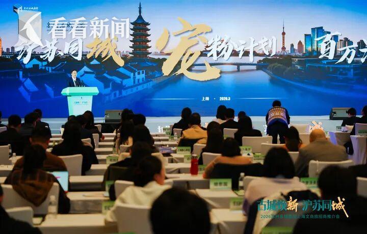 3月24日,2026蘇州名城保護(hù)集團(tuán)上海文商旅招商推介會(huì)在上海黃浦區(qū)舉行,將兩座城市再度緊緊連接在一起。在這場(chǎng)推介會(huì)上,蘇州敞開(kāi)大門,向上海、蘇州兩地文旅投資、文創(chuàng)、商業(yè)運(yùn)營(yíng)、數(shù)字化等各類企業(yè)代表曬家底、亮資源,開(kāi)啟滬蘇(州)同城文商旅合作新篇章。