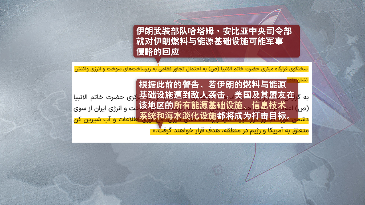 面對(duì)美方威脅,伊朗武裝部隊(duì)今天警告稱,若伊朗能源基礎(chǔ)設(shè)施遭襲,美國(guó)及其盟友在中東地區(qū)的所有能源、信息技術(shù)和淡水設(shè)施都將成為打擊目標(biāo)。