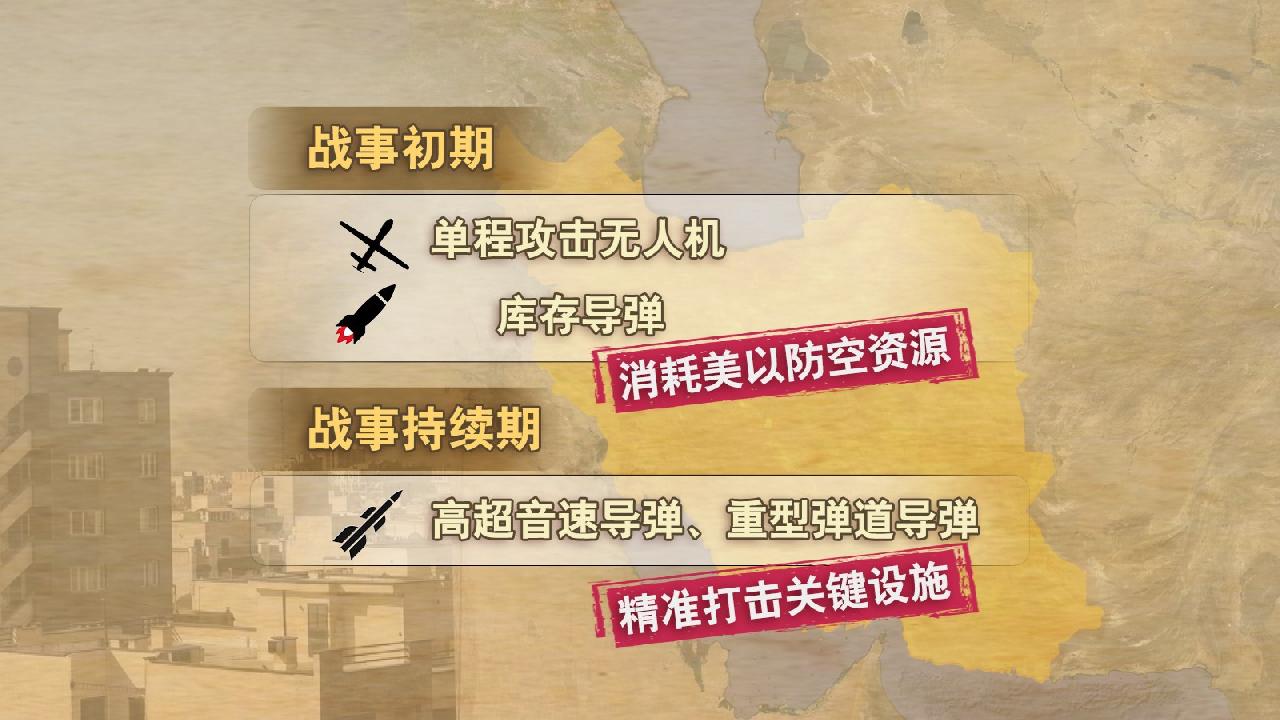 戰(zhàn)事初期,伊朗使用大量單程攻擊無人機和庫存導彈,以小搏大,消耗美以昂貴的防空資源。眼下,伊朗又拿出高超音速導彈、重型彈道導彈,15日甚至稱首次使用了射程兩千公里的“泥石”彈道導彈。有分析指出,伊朗現(xiàn)下更傾向于精準打擊“美方關鍵軍事設施”,同時瞄準中東地區(qū)“與美以有關的經(jīng)濟金融機構”等“痛點”,意在使美國感到得不償失、從而知難而退。