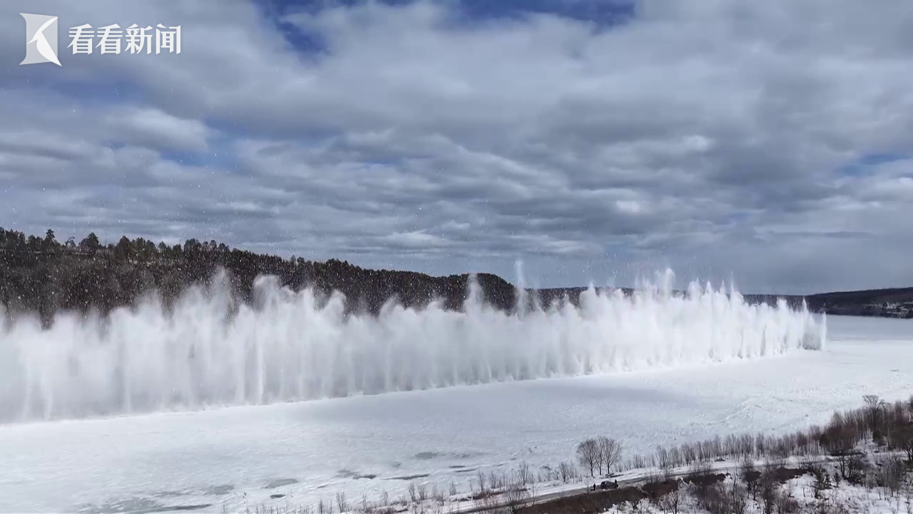 隨著起爆指令下達(dá),伴隨著聲聲巨響,黑龍江漠河段的江面上,瞬間形成了幾十米高的冰霧和長達(dá)4.9公里長的破碎段,場面非常壯觀。目前,有關(guān)部門已對黑龍江干流漠河段的興安鎮(zhèn)、北紅村、北極村等3個江段進(jìn)行了人工爆破,累計鉆孔860個,爆破總長度11.15公里。