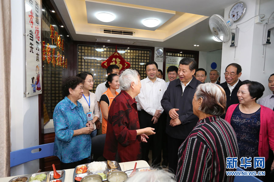 2014年11月1日至2日,中共中央總書記、國家主席、中央軍委主席習(xí)近平在福建調(diào)研。這是1日傍晚,習(xí)近平在福州市軍門社區(qū)同居家養(yǎng)老服務(wù)站的老人們親切交談。新華社記者 蘭紅光 攝