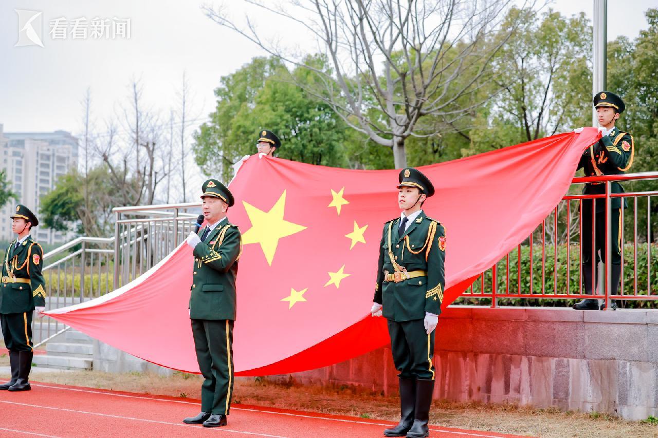 當(dāng)天,董立敢與青浦區(qū)思源中學(xué)全體師生,還共同見證了“國(guó)旗在我心中”新學(xué)期升旗儀式。在董立敢老師的指揮下,國(guó)旗儀仗隊(duì)的隊(duì)員們護(hù)送長(zhǎng)5米寬3.3米的“中國(guó)第一旗”從同學(xué)們頭頂略過(guò),讓同學(xué)們與“中國(guó)第一旗”進(jìn)行神圣而莊嚴(yán)的“零距離”接觸。