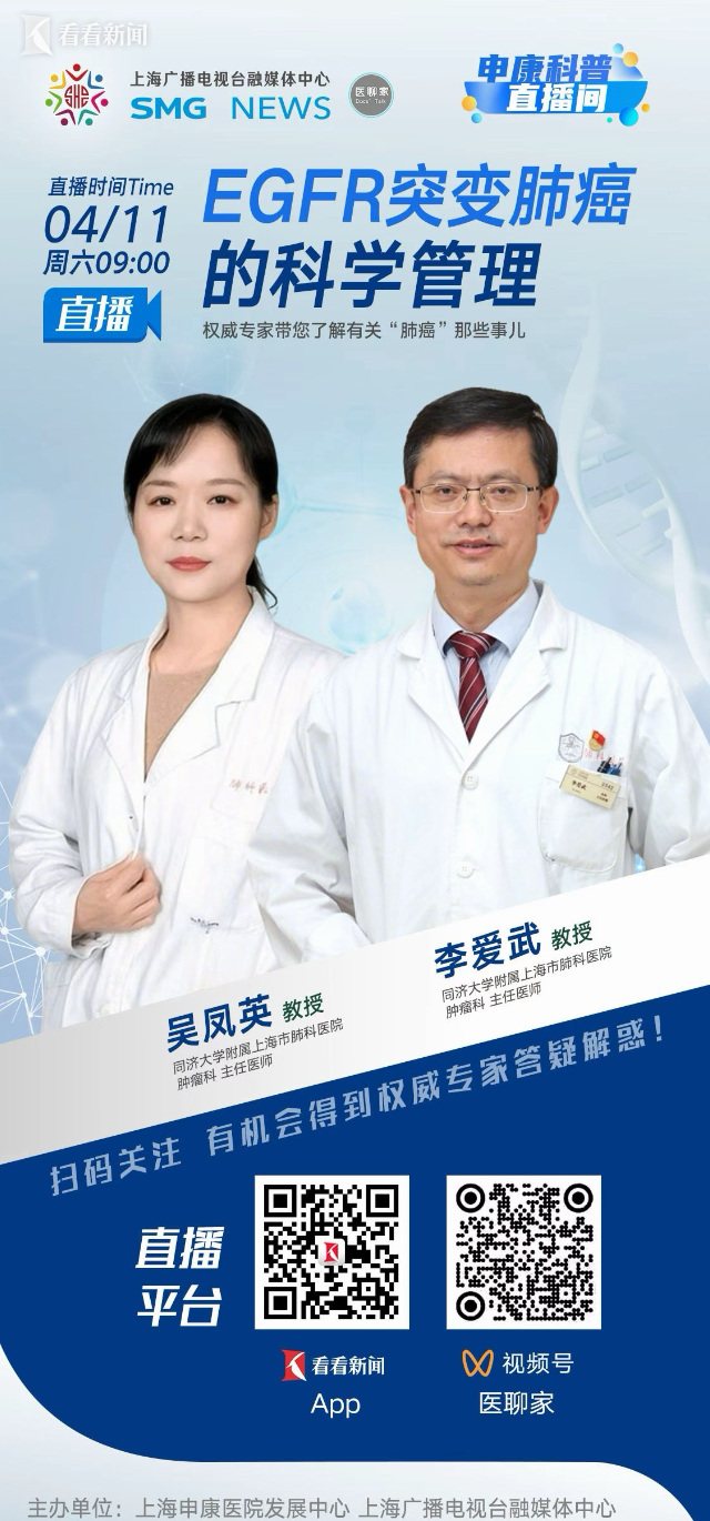 隨著基因檢測(cè)的普及,EGFR突變型肺癌已成為臨床中一類具有明確靶向治療策略的重要人群。相較于傳統(tǒng)治療模式,靶向藥物顯著延長(zhǎng)了患者生存時(shí)間,也使肺癌逐漸呈現(xiàn)出可長(zhǎng)期管理的慢病化趨勢(shì)。然而,治療過程并非一成不變,耐藥的出現(xiàn)、用藥方案的調(diào)整、腦轉(zhuǎn)移等并發(fā)情況的監(jiān)測(cè),以及長(zhǎng)期副作用的管理,都對(duì)患者和醫(yī)生提出了更高要求。同時(shí),公眾對(duì)EGFR突變肺癌的認(rèn)知仍停留在“吃靶向藥”這一單一層面,對(duì)規(guī)范隨訪、全程管理和個(gè)體化治療理解不足。因此,系統(tǒng)介紹EGFR突變肺癌的科學(xué)管理路徑,對(duì)于提升患者依從性、延長(zhǎng)生存時(shí)間并改善生活質(zhì)量具有重要意義。為此我們邀請(qǐng)到了同濟(jì)大學(xué)附屬上海市肺科醫(yī)院腫瘤科主任醫(yī)師吳鳳英教授、同濟(jì)大學(xué)附屬上海市肺科醫(yī)院腫瘤科主任醫(yī)師李愛武教授做客直播間。