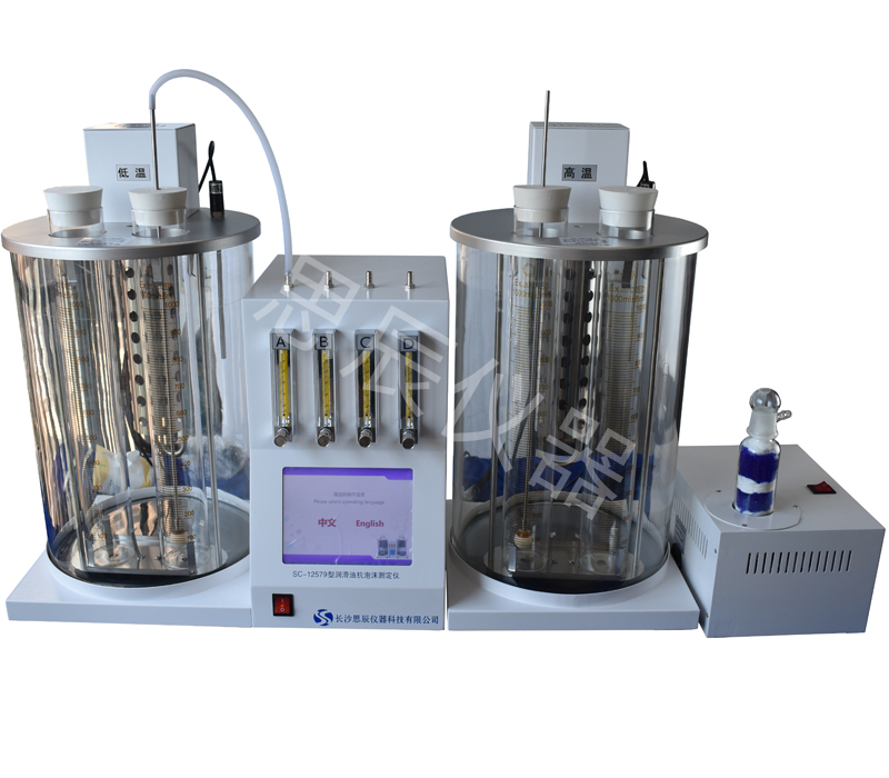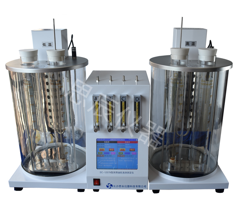 本儀器是根據(jù)標(biāo)準(zhǔn)GB/T12579《潤(rùn)滑油泡沫特性測(cè)定法》及標(biāo)準(zhǔn)ASTM D892研發(fā)設(shè)計(jì)制造,采用數(shù)字式 PID 溫控器控制浴槽溫度,通過(guò)電機(jī)攪拌使浴槽恒溫均勻(高溫槽 93.5℃,或低溫槽 24℃,控溫精度±0.1℃)。使用空氣泵、轉(zhuǎn)子流量計(jì)、氣體擴(kuò)散頭、計(jì)時(shí)器等,向裝有試樣的量筒內(nèi)、定時(shí)定量地通入空氣,測(cè)定試樣產(chǎn)生氣泡的體積。儀器外形美觀、使用方便。